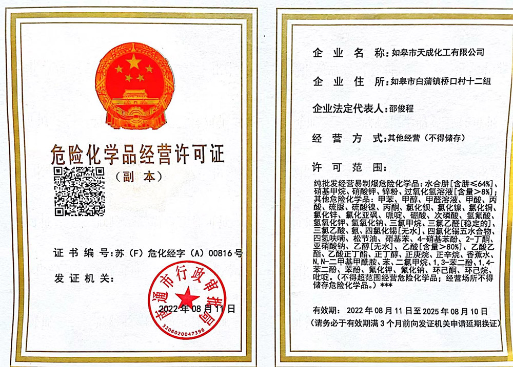 如皋市天成化工專業為您服務: